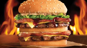 The Outlaw Big Jack features the chain’s two flame grilled patties topped with crispy premium eye bacon, and a combination of BBQ sauce and a peppercorn sauce.
