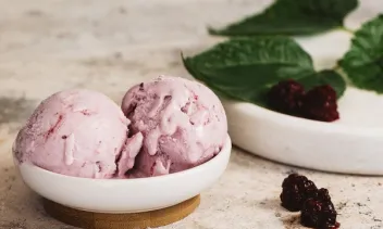 The Boysenberry Swirl is mixed with boysenberry pieces and brought together with a berry swirl.